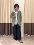 ▪︎ジャケット 肩パッドが入ってボックスシルエットのジャケットは、メンズライクなコーデが好きな方におすすめ🩶 ボタンがお洒落すぎる、、! 見た瞬間に即買いしました🫶 普段38の方は36でも着ることができるくらいゆったりしたサイズ感です。 私はかなりダボっとしたシルエットが好きなので38にしました🙆♀️ ▪︎コーデポイント グレー×ブラックのモノトーンの中にグリーンを入れることで爽やかに🌱 薄めのオレンジのカーディガンを巻くと、より柔らかい印象のコーデに仕上がります🌼 ボトムスをデニムに変えてOFFの日も使ってます🫶 ぜひチェックしてみてください!!!