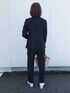 【jacket】着用サイズ 7号 いつものサイズで大丈夫です。 150cmの私でも袖直しなしで着用できます。 ストレッチがあり動きやすいです。 家庭洗濯出来るのも嬉しいポイント。 【pants】着用サイズ7号 裾上げ済みパンツ。150cmの私は7号だと丈直しが必要です。 いつものサイズで大丈夫そうです。 テーパードパンツできちんと見えします。 ストレッチ素材なのでノンストレスです。 家庭洗濯できるのも嬉しいポイント。