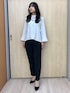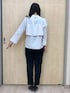 【blouse】着用サイズ M ハイネックバックコンシャスブラウスです。 背中のフリルと袖にアクセントのあるブラウスです。 1枚でも決まるブラウスでタックインでもアウトでも使いやすい丈感なのでオケージョン利用にもぴったりです! Mサイズ着用でぴったりでした。