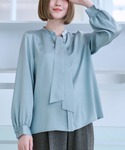 《ジャケット 着用サイズ13号》 ヒルトンならではのスッキリ細身のシルエットですが、いつものサイズで問題なく着用できました。 少し長めの着丈なので気になる腰回りもカバーできます。 《トップス 着用サイズL》 光沢感のある生地が特徴の上品なブラウスです。 いつものサイズで少しゆとりを持って着用できました。 タイは取り外しができるので、外すとキーネックブラウスになります。 静電気抑制生地使用なので乾燥しがちな時期にも安心です。