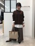 シャツとのレイヤードスタイル。 ブラウンでワントーンに合わせれば、カジュアル過ぎず綺麗めな印象に。 オフィスでの勤務にもピッタリです! 袖もとを捲って、シャツのカフスを見せることでメリハリのきいたコーディネートになります。 🏷️ニット 38(ワンサイズ) 程よい厚みのニットは腕元もたっぷりボリューム。 袖にあしらわれた長めのリブで腕まくりしてもしっかりフィットしてくれます! 🏷シャツ 38(ワンサイズ) 洗濯してもアイロン要らずのデザインシャツはごわつきにくく、ニットの下に着るにもおすすめです。 🏷ワイドパンツ 36 股上深めで安心感もあり、ゴム仕様のウエストでストレスフリー。 程よいボリューム感とハリ感でお仕事にもピッタリです。