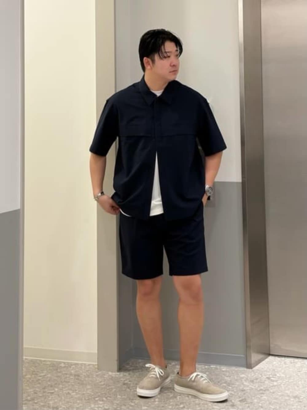ビジネスシーンでもカジュアル化が進む中で、 何をどう選べばいいかわからないなど、 たくさんのお声をいただく中で、 オフィスでも、普段でも、 いつでもどんな時でも着こなせる アイテムたちが登場しました。 今回は少しカジュアルに振り切った ハーフパンツスタイルですが、 セットアップなのできちんと見えも◎ 同じ素材で長袖とロングパンツもありますので、 組み合わせ自由自在にコーディネートできます!