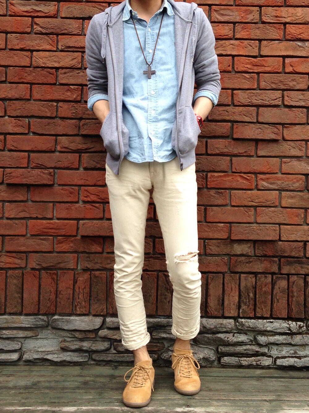 まだ少し肌寒かったのでパーカー着ました! ザ・シンプル笑 このコーディネートのキモは在庫処分で買った700円のアディダスのスニーカーです笑 ホントにアディダスなのかな笑