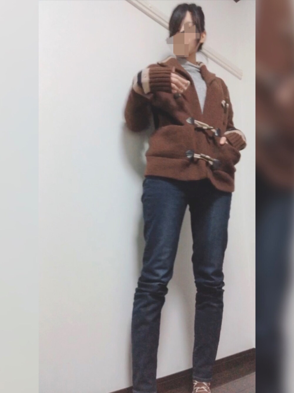 トミーのメンズのオールドカーディガン、メルカリで購入! ウールでしっかりしてて、11月の今でもアウターとして使えます🥰🍀 インナーはなんとフリースニット!UNIQLOです。 靴下はキリン柄で、ダイソー!笑
