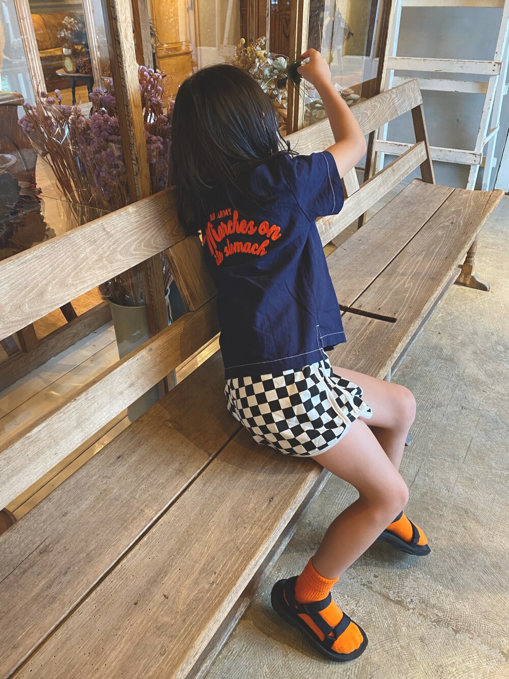 753Photoの打ち合わせへ。 フォトブース可愛かった〜♡ 至る所にたくさんのドライフラワーとこだわりのアンティーク小物があって、素晴らしいお店でした。 撮影日楽しみ〜♡ てか、753あるのに今日美容院で髪を切ってしまった😅もうちょっとあとにすればよかった… tops:rodeocrowns pants:mabeob_kids socks:lowrysfarm shoes:teva