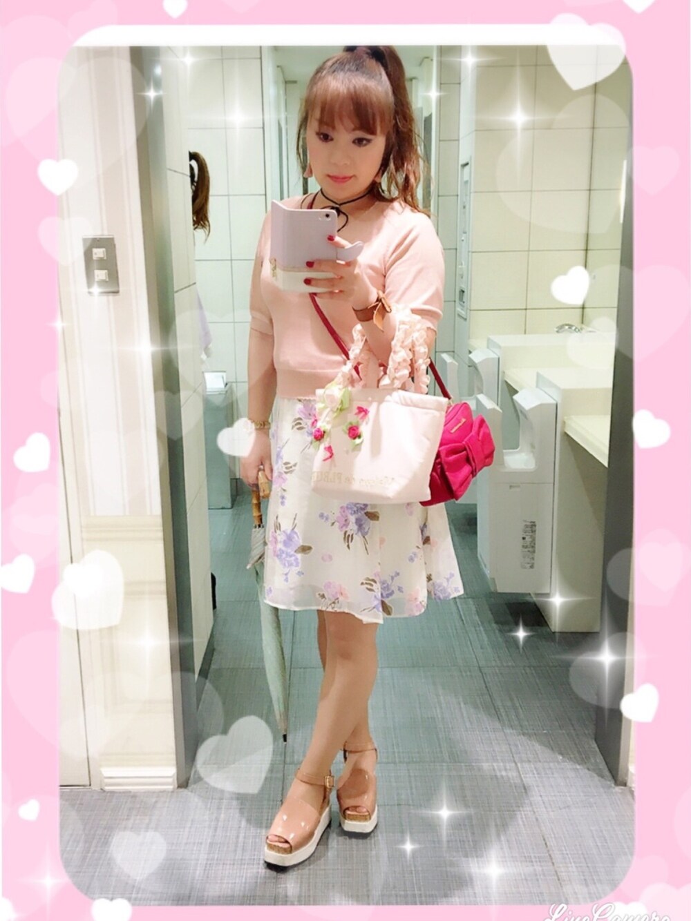 sumika_pinkpurpleのトートバッグ「【TOKYO GIRLS COLLECTIONモデル】フラワーリボンフリルハンドルトートバッグ」を使ったコーディネート