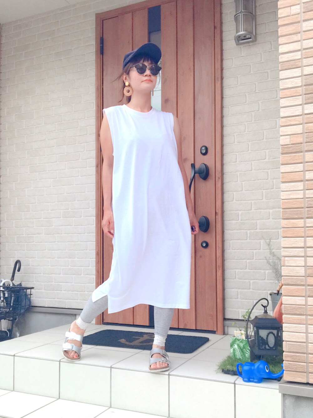 sumireのワンピース「クルーネックノースリーブカットソーワンピース」を使ったコーディネート
