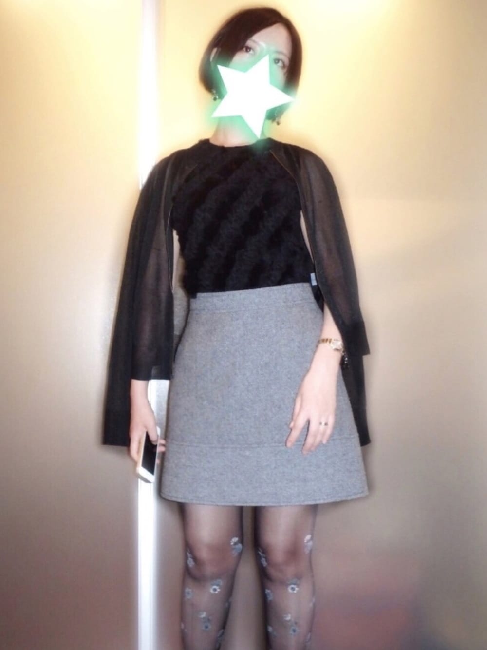 ウールスカートは昔ながらの商店街の古着屋さんで1980円(OvO) 商店街巡りすきです。美味しいコロッケとかおこわとかお団子とか…その場でいただいてしまう。 シースルーな上着はイタリア製🇮🇹