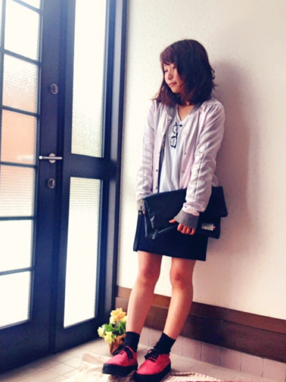 今日は残りすくないバイトです! ピックアップタグやってみましたー! リバーシブルのスタジャン!普段は裏のグレーの方使ってますが、今日はきらきらの方でせめてみました(*`艸´) メガネTもお気に入りです。 ピンクの靴は家族からは不評ですが気に入ってます!笑 休憩短い!行って参ります!