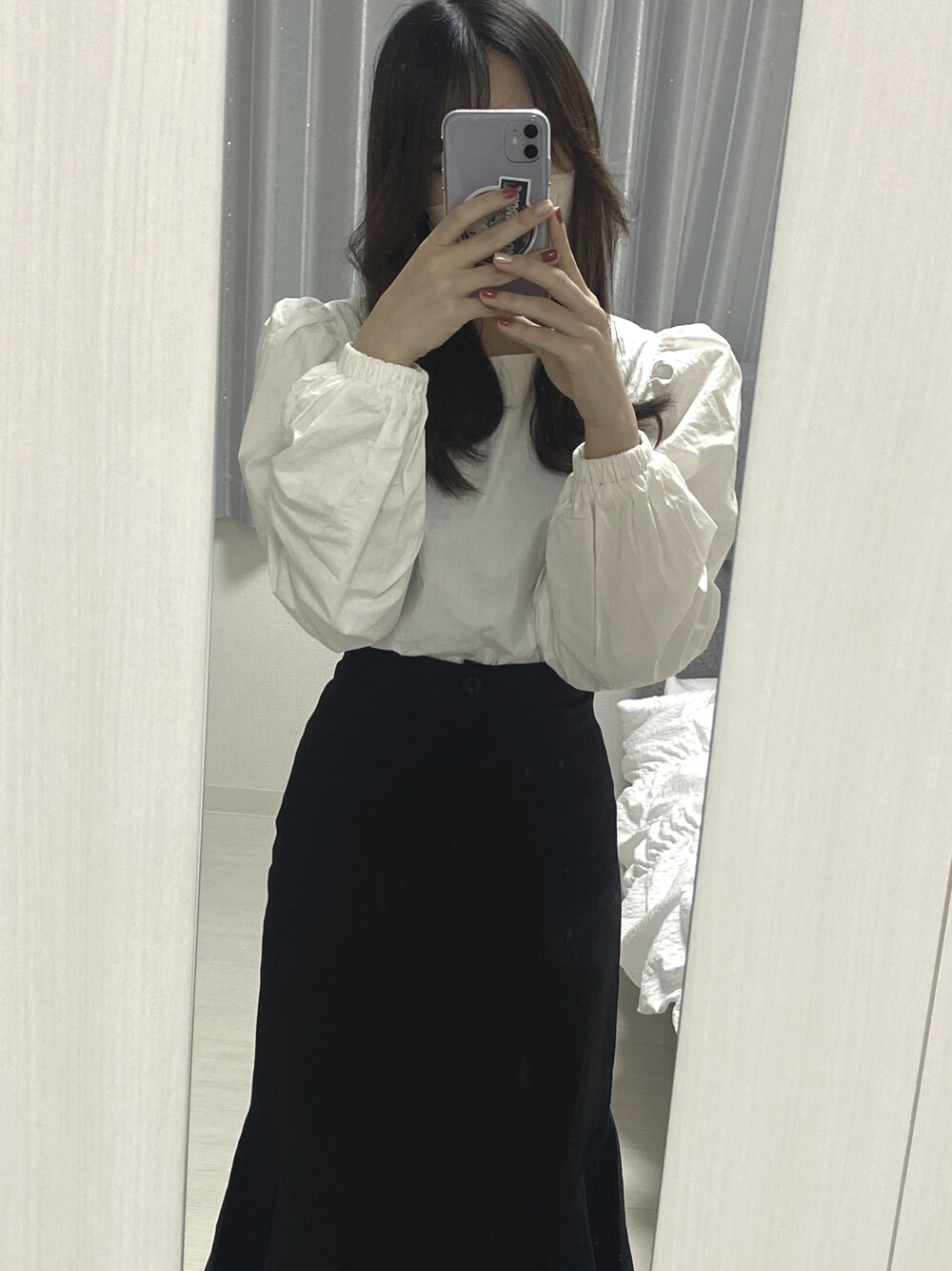 久しぶりの投稿✈︎ ユーザー名を他のアプリに合わせて "すーさん"から"すめし"に変更しました 職場が私服出勤の為、オフィスコーデを載せていこうかと思っています^^ 最近すごく冷え込んで、すっかり秋です🍁🍂 衣替えも終えて、今日から秋仕様です 全身SHEINコーデ♥ シルエットが綺麗に見えてお気に入り☆ ブラックのマーメイドスカートとホワイトのブラウスの着回ししやすいシンプルコーデです☁