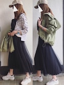 大人綺麗めコーデが好きです💖ロングスカートが 好きでコーディネートによく取り入れます! 低身長の方にオススメコーデです✨