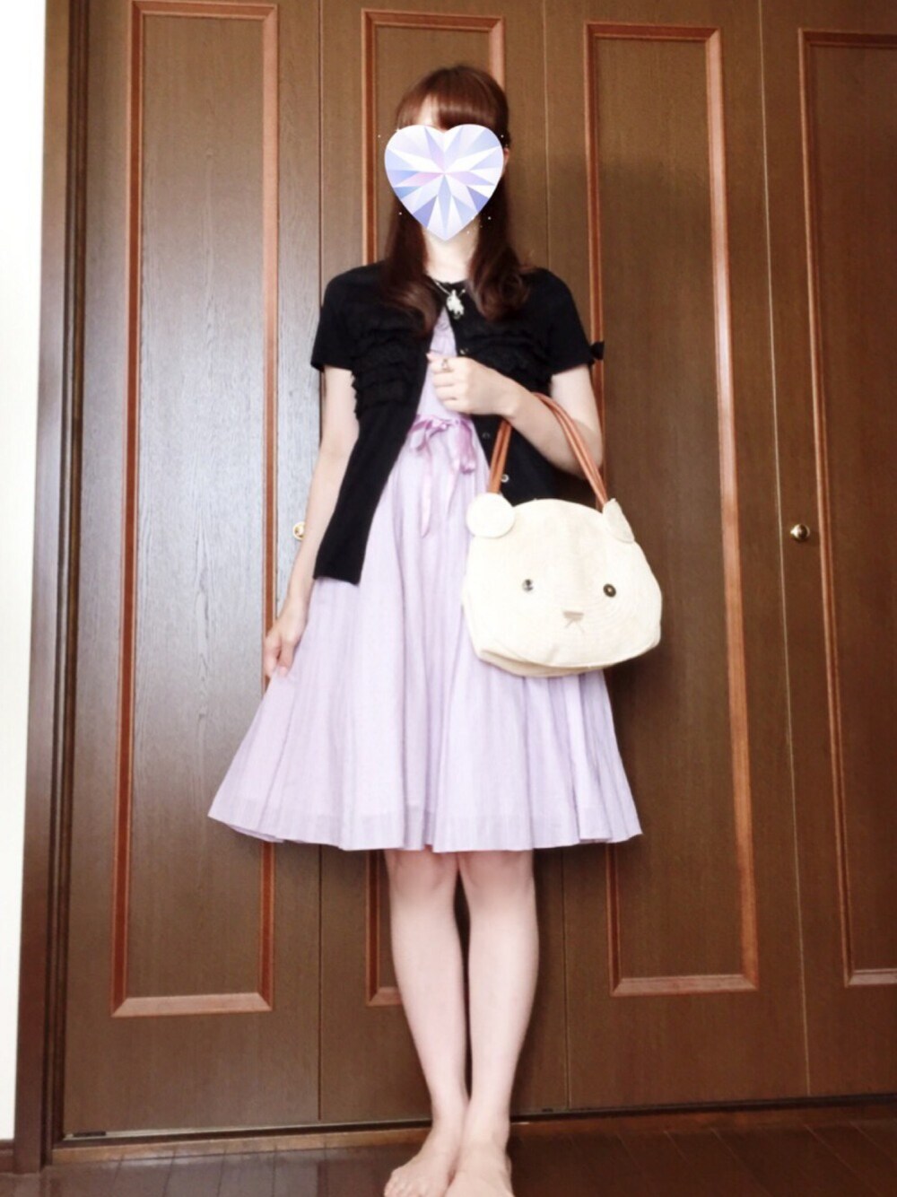 今日はお気に入りエミキュのラベンダーカラーのワンピース♡ 頭にアイスつけて夏っぽく笑