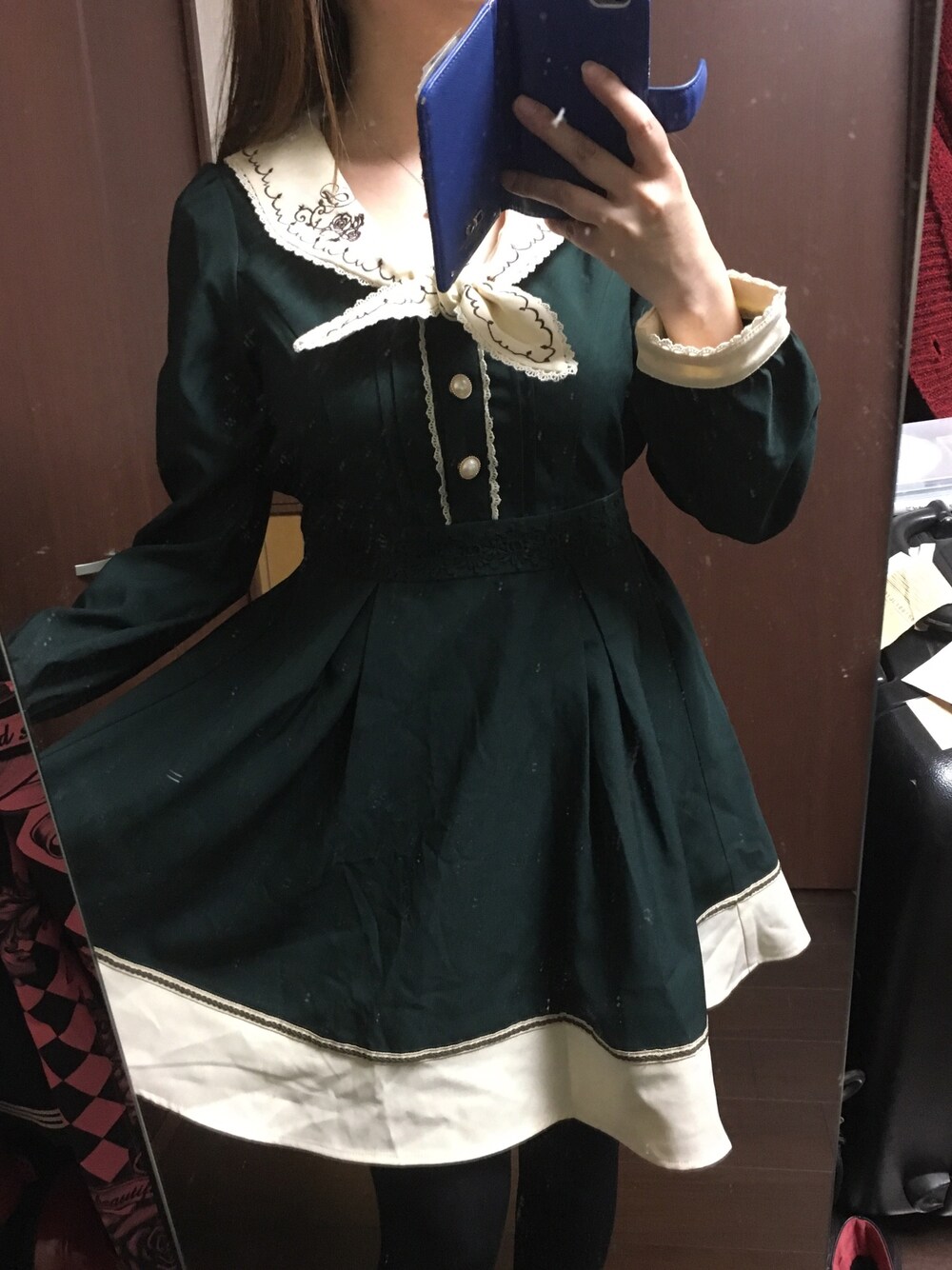今年も大人気のセーラーワンピ入荷しました♡ ボルドーだと可愛すぎる という方にオススメなのが緑です^^ 今のシーズンにぴったりですよ