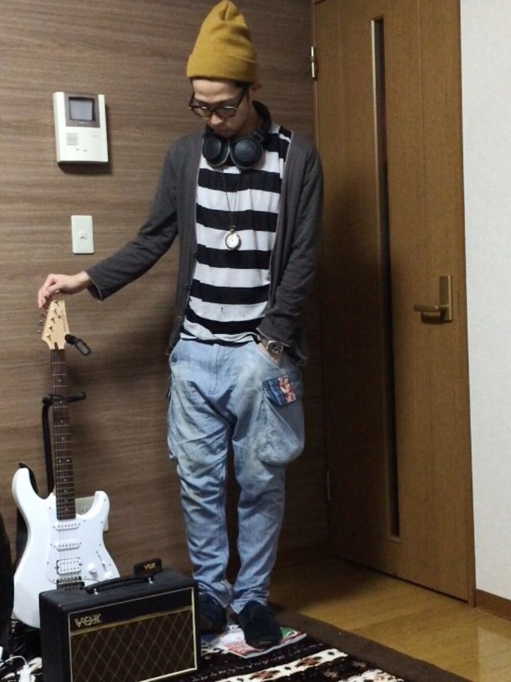 おしゃれを愛する皆さんご機嫌いかがでしょうか?コウタです! ちょっと忙しくて、みなさんのコーデ見れてませんでした。すいません。 いつも、セーブやコメントほんとうにありがとうございます! 嬉しすぎます(◍•ڡ•◍) 最近のタグにはのれないので、全く関係ないコーデです。 そして、シンプルでただ簡単に合わせただけでした。すいません。 ネックレスは懐中時計です! 音楽好きなので軽音部に入部させてもらいました!🎸久しぶりににぎりました!撮影用でとってるので、アンプにつなげなくて、すいません。 そのVOXはメインのアンプではありません。。 ヤマハのアンプを使ってます! ヘッドホンはDJ用のオーディオテクニカです! リスニング用のヘッドホンはSONY使ってますれ 作曲用にもう1つテクニカで欲しいのですが、今はお金ないので保留中です。 ひとり暮らしお金かかりますよね〣( ºΔº )〣貧乏過ぎて、やばいです(笑) ガルボの抹茶うますぎでした(๑′ᴗ'๑) ブログ更新しました!プロフから飛んでみてください! Twitter、Instagramもやってます!wearからきましたと一言お伝えください! 小窓の雲はInstagramでも載せましたが、昨日の札幌の雲です! 検索ワードでも、地震雲 札幌 というワードが多く検索されてます。3.11の時もこういう雲が2週間前にあったみたいです。。 レンズ雲っていう説もありますが、何もないことを祈ってます。