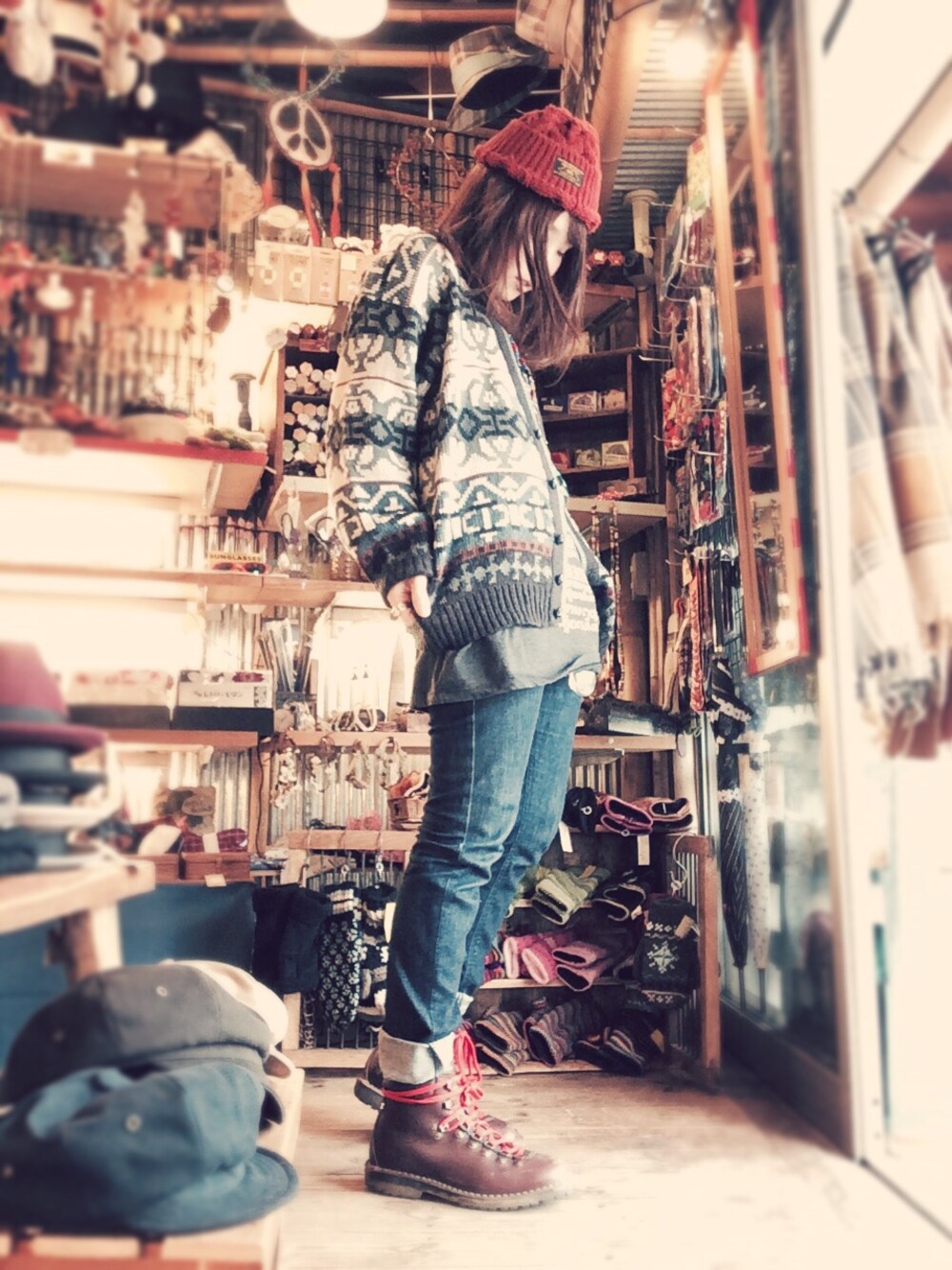 朝晩はまだまだ寒いですねー…! 今日はわりとシンプルに…🙏 こないだ台湾で買った古着🌝 ゆったりしたカーディガンが好きです🙏 シャツもちょっと長めで🙏 体型隠れるからね…🌚🌝🌚🌝 まだまだニット帽が活躍するシーズンですね❤️ 春物のニット帽買おうかなぁ💪