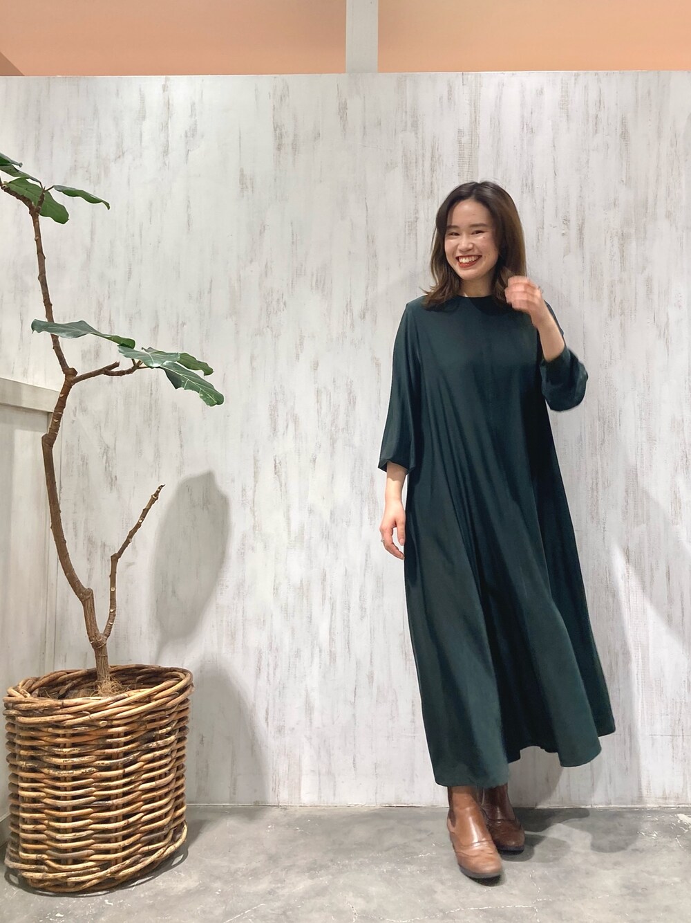 MOMOのワンピース「【揺れ感が女性らしい】ドレープフレアワンピース(長袖)」を使ったコーディネート