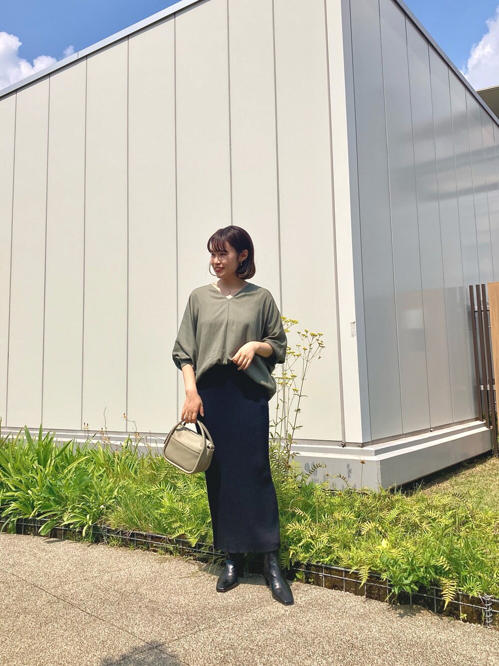 オンオフ兼用で着られるブラウス☺️ ニットスカート合わせで大人カジュアルスタイル☝🏻