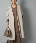 MOMOのノーカラーコート「きれいめにもカジュアルにも着回せる ダンボールVネックコート」を使ったコーディネート