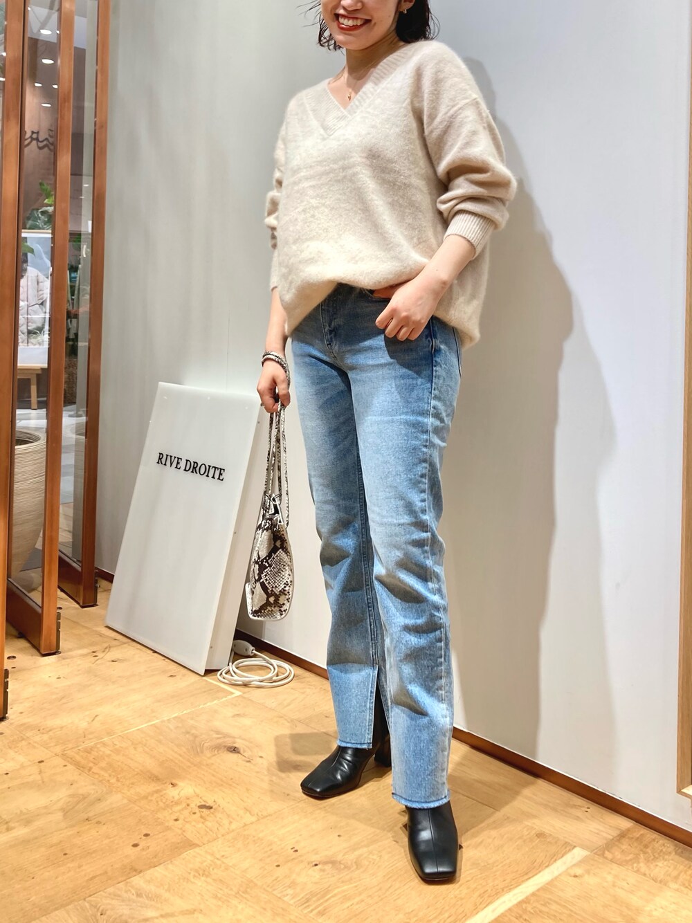 ニット×デニムの王道可愛いコーデ🕊 毛足の長いVネックニットは大人のキレカジスタイルが簡単に完成します🥰