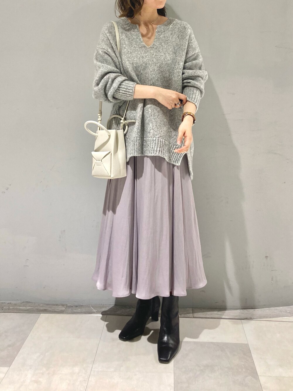 MOMOのニット/セーター「デコルテを美しく魅せる スリットネックエアリーニット」を使ったコーディネート