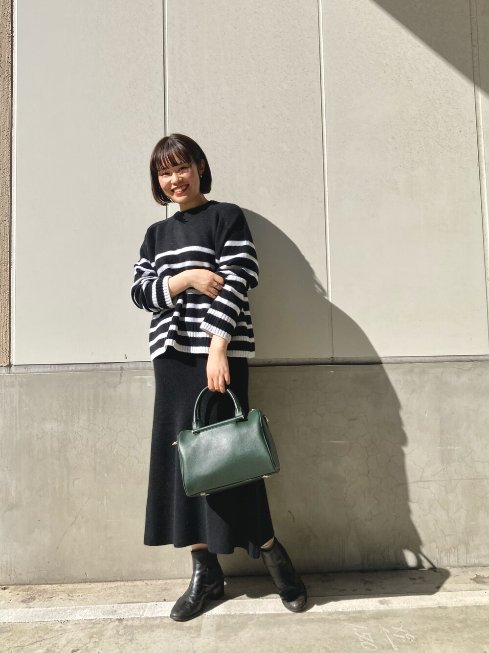 MOMOのニット/セーター「定番のボーダートップスも新鮮に パネルボーダーニット」を使ったコーディネート
