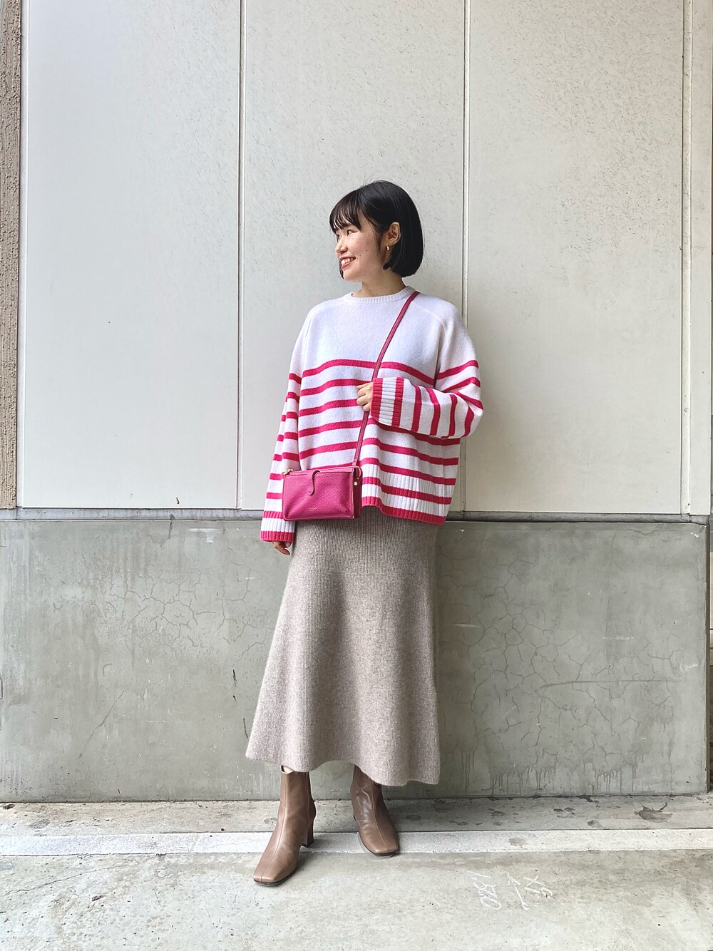 MOMOのニット/セーター「定番のボーダートップスも新鮮に パネルボーダーニット」を使ったコーディネート