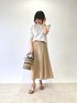 ブラウスはZOZO限定アイテム! 涼し気な軽めな生地感のアイテム合わせで爽やかな雰囲気に🌱 肩のディテールで着映えし、かごバッグをプラスしてフレンチシックなキレイめカジュアルスタイルに🐻