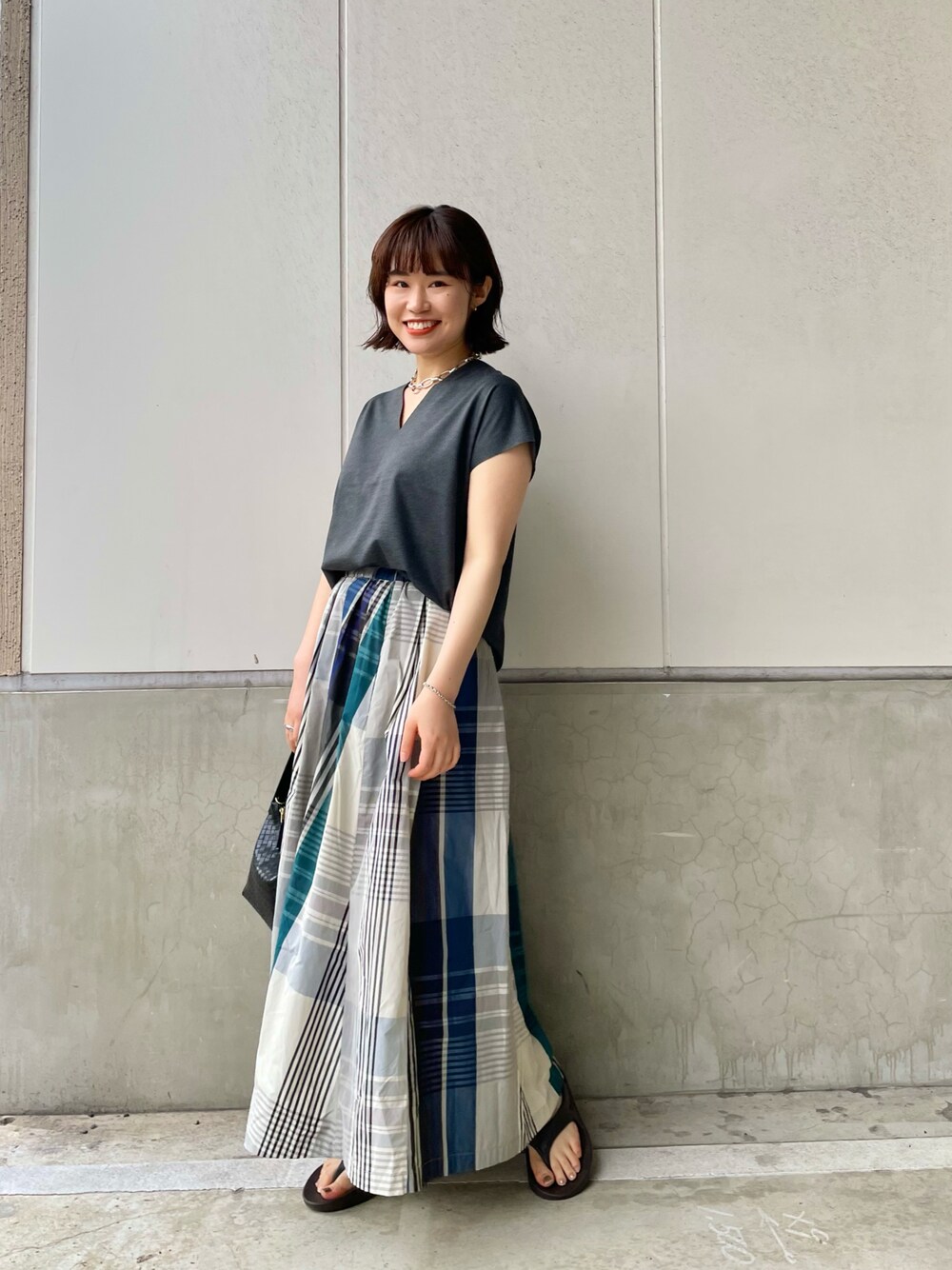 WEBで人気のチェックスカートが主役のコーデです😊 トップスは毎年ご好評のカットソー🙆🏻♀️ シンプルで着回し力抜群なので色違いで持っていると洗い替えにも便利です!!