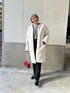 MOMOのノーカラーコート「ロング丈で安心感/ノーカラーボアコート」を使ったコーディネート