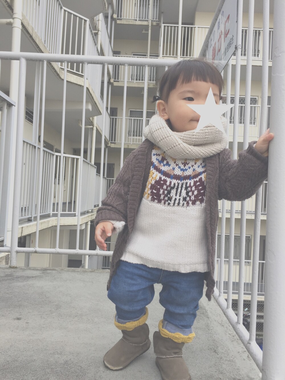 ジーパンは本格的なデザインだけど動きやすそう◎ スヌードはセールで400えん!