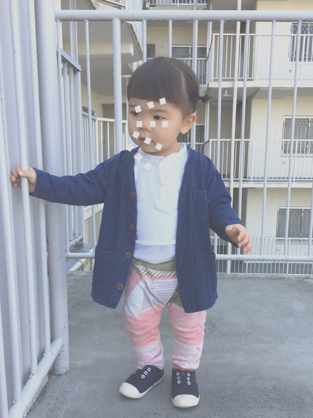 パンツは伊藤尚美さんのテキスタイルnaniiroのものを使って。ニット地ははじめて縫ったけど伸びてむずかしい…