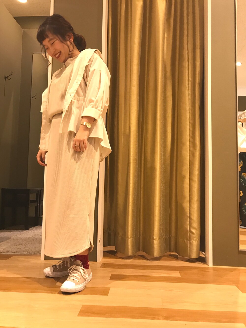ベージュコーデが大好きです🐾 このワンピース、丈が長めなので低身長のわたしにはちょっと、、、と避けてきましたがベルトをすれば余裕で着れちゃいました☺️視野が広がって思わず笑顔に、、💞