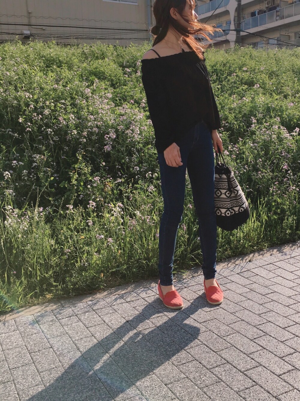 二子玉川、やっぱ好き♡ オフショルは まだ夕方になると寒いけど 女性らしさを出してくれるので これから先、たくさん着よ♡