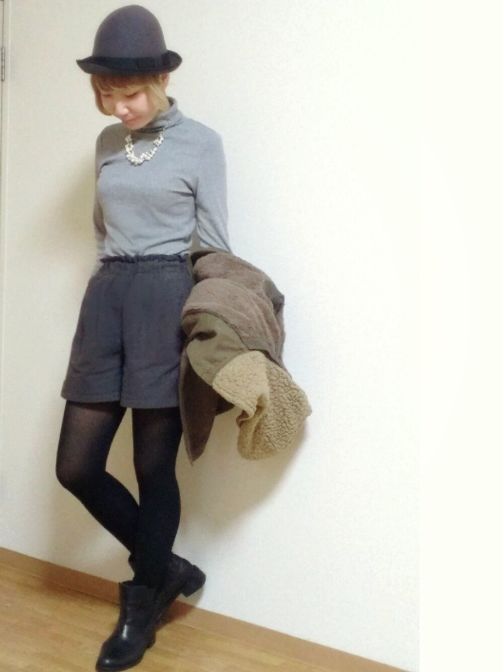 今日はグレートーンでまとめました◎ 帽子かぶるのが癖みたいになってて かぶってないと落ち着かないです。 あと2日! 楽しみが待ってます♪