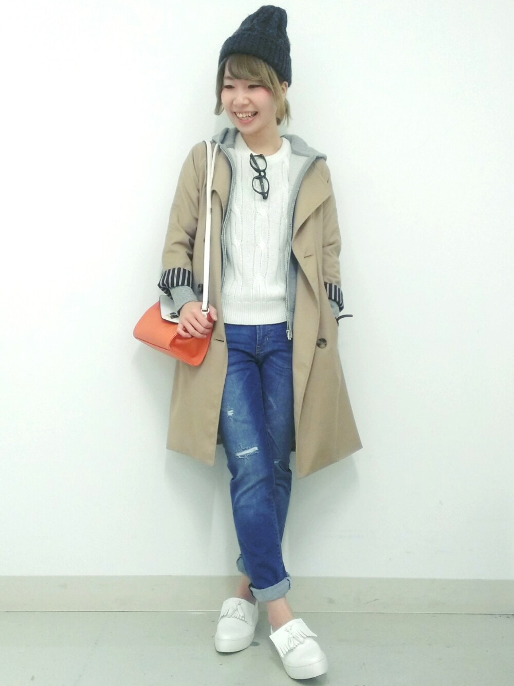 最近、鼻水でるし喉かゆいし、、 すでに花粉症の症状がっ!!!! まだ、風邪の方がマシ! 去年の春から花粉症デビューしました。 ほんと、ほんっと辛いですよね(´;ω;`) ○。 定番のアウター×パーカーで! いつもシンプルモノトーンばかり着てるので、オレンジのカバンを差し色に使いましたあ♪