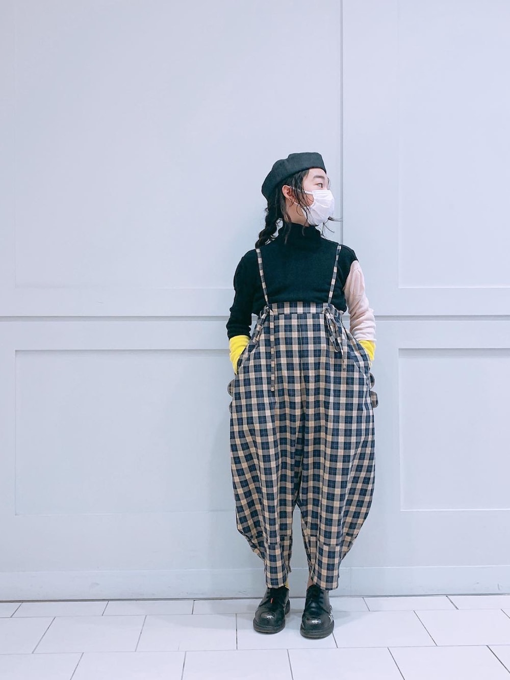 チェックのパンツを ハイウエスト気味 好みの着方☺︎