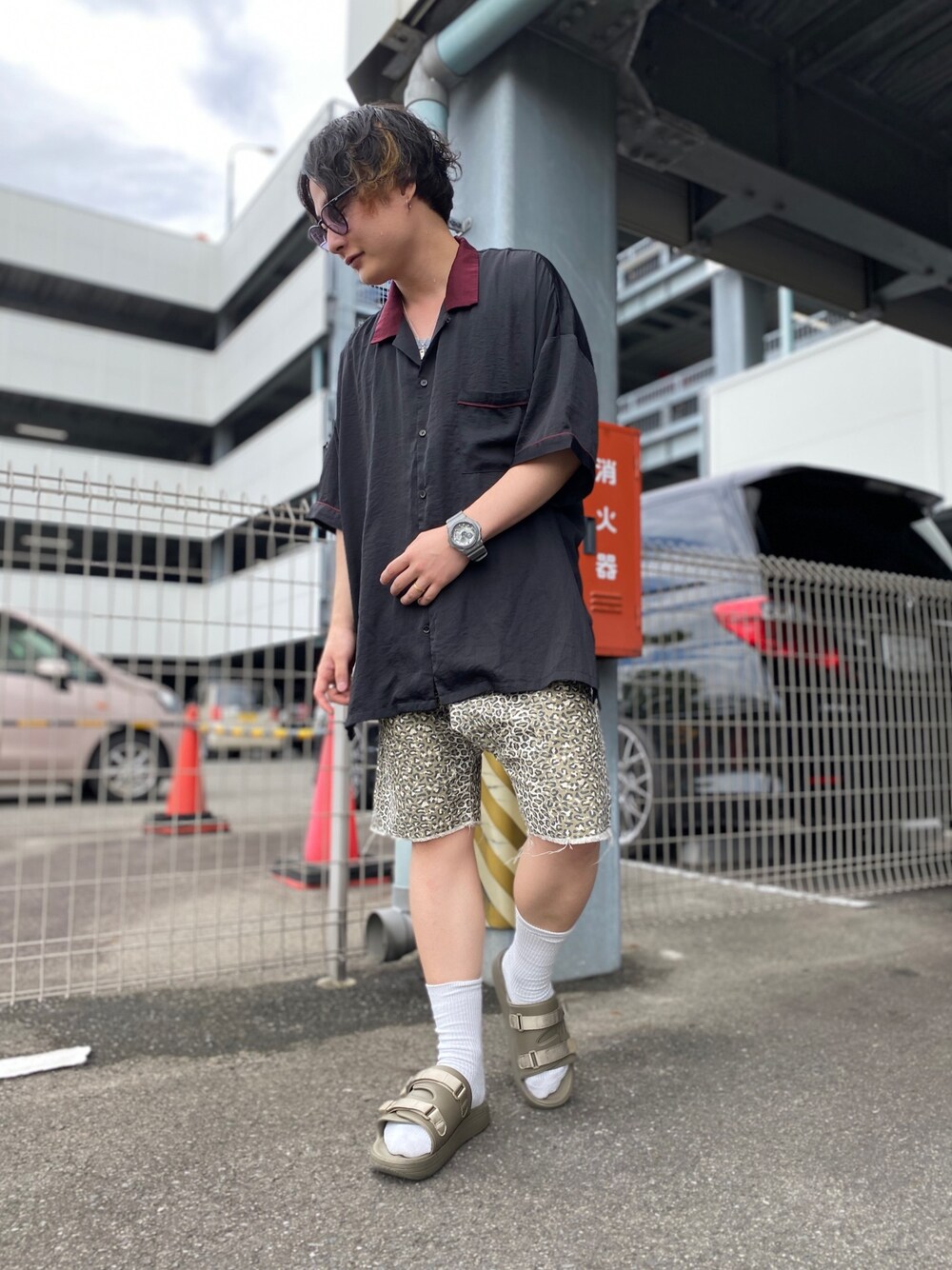 【駐車場1階だいたい停められへんコーデ】 このシャツつるつるした生地で着心地が良い! パジャマとして使用すれば快適な睡眠が得られそう! 使いませんが...笑