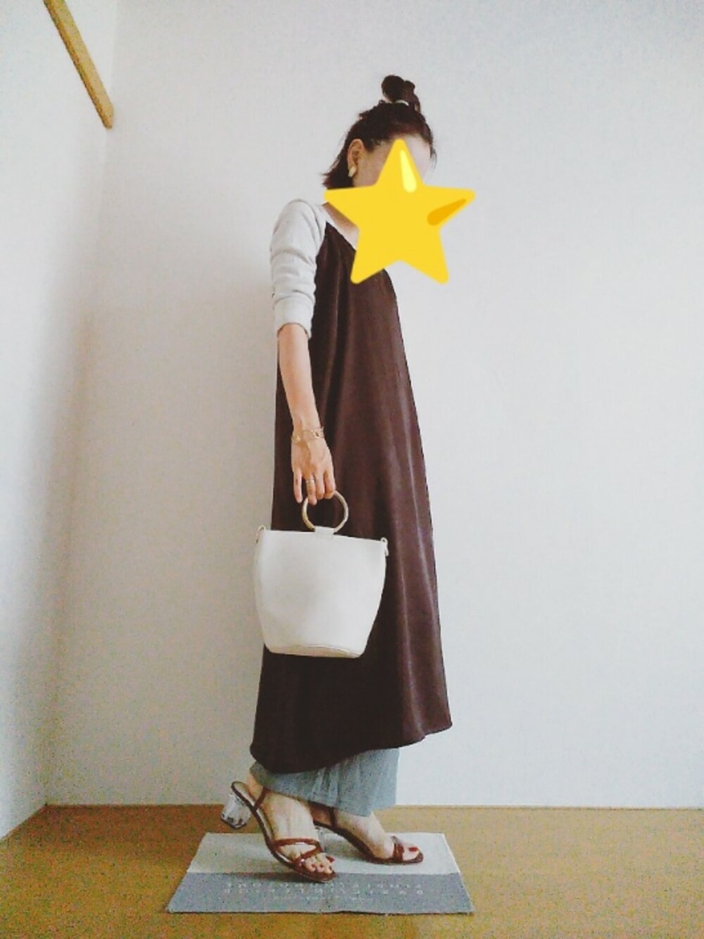 古着屋を巡った日。 ヴィンテージライクに仕上げた…つもり。 光沢があるキャミワンピを主役に。 下にくすみグリーンのイージーパンツを入れました。 ブレスレット、バッグの持ち手はゴールドで統一。 イヤリングは古着屋で買ったレトロなもの。 サンダルはヒールがクリア。 プチプラコーデ。