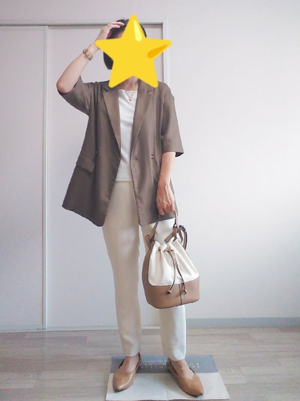 ジャケットはまだ暑いけど。 妄想コーデ。 渋めのトーンでまとめたかったけど、 白と合わせたくなった。 UNIQLOのスクエアネックのカットソー。 ジャーナルのテーパードパンツ。 どちらもオフホワイト。 靴と鞄はキャメル。 キャンバスのバッグとパンプス… 色合わせ過ぎ? 何となくテイストが違う気がした。どんまい。