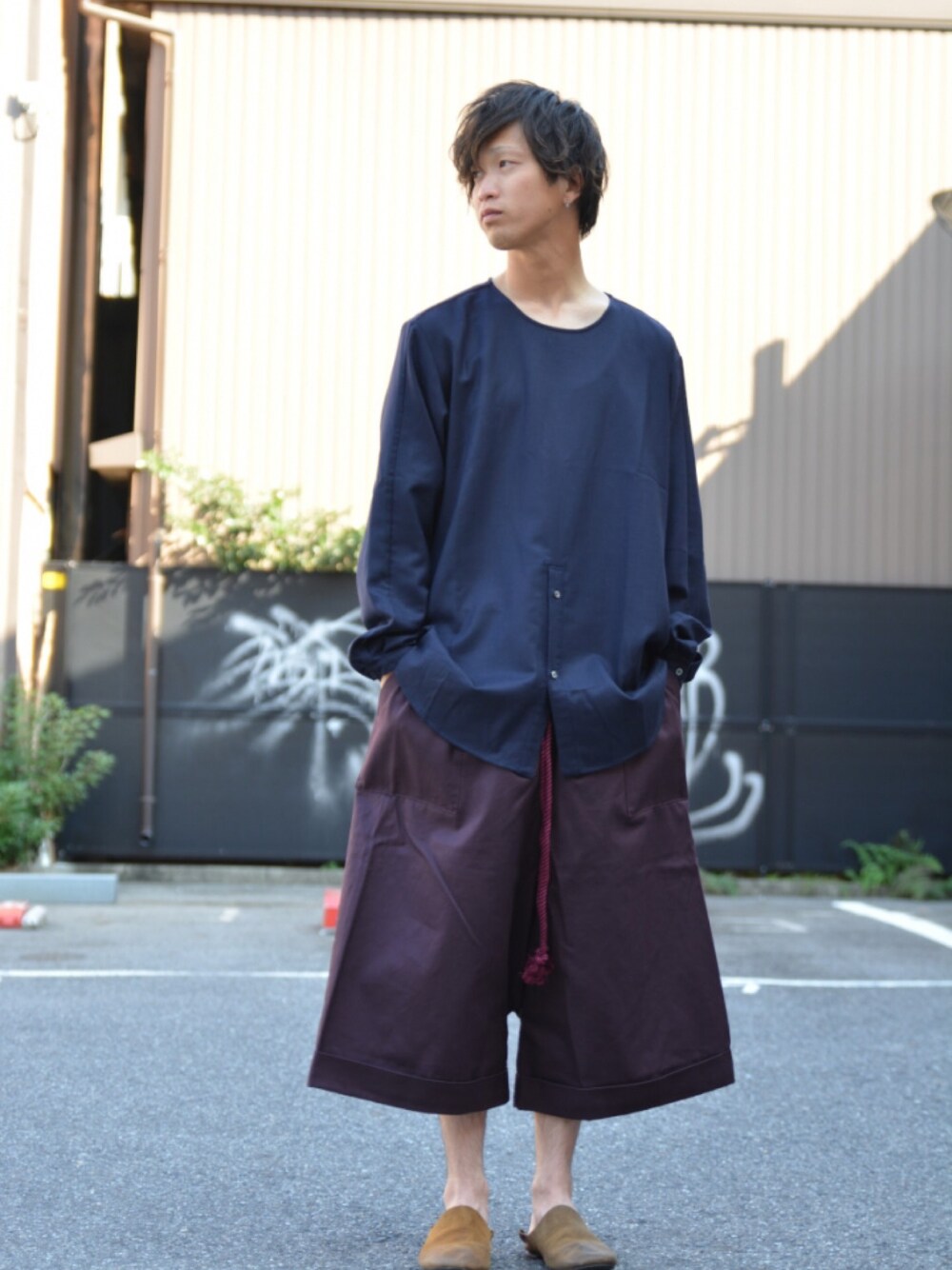 まだまだ暑い そんなときにさらっと着ていただけるコーディネートです。 やはりパンツ・カットソースタイルがとても楽でいいですね。 手を抜けるとこは抜きたくなる性格です笑 ffixxed ウールオーバーサイズシャツ カットソーのように見えるシャツ 裾のカット部・袖がシャツに見えます。 上品なウールを使用していますので1枚でも主役アイテムとして使えますが冬のインナーとしても使っていただけます。 aaAaa ウエスト紐ワイドパンツ 定番のパンツのOVIE STUDIO別注色です。 紐はがっつりと垂らして着用していただきアクセサリー感覚で。 目を惹くワインレッド色はファッションの差し色としてとても良いです。 女性の方にもオススメできるアイテムになります。