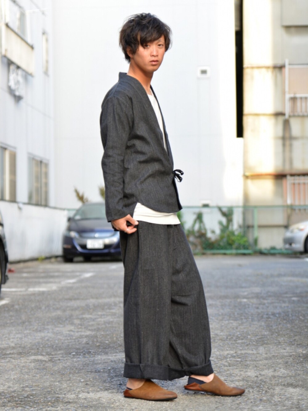 こんばんは。 寒いです。 昨日の夜はコートを羽織りたくなるほどの寒さでしたね。 昼は暑いのに… 悩ませますな天気さん、、笑 昨日はずっと手に入れたかったコートを買えました。 これで冬服は揃いましたので楽しみでいっぱいです。 theSakakiのセットアップ 居間着シリーズです。 先日はブラウンを紹介しましたがカラーは3色あります。 名前の通り居間(家・部屋)で着るだけありまして心地よく着用できます。 ネイビーもございますのでまた後日アップしたいと思います。