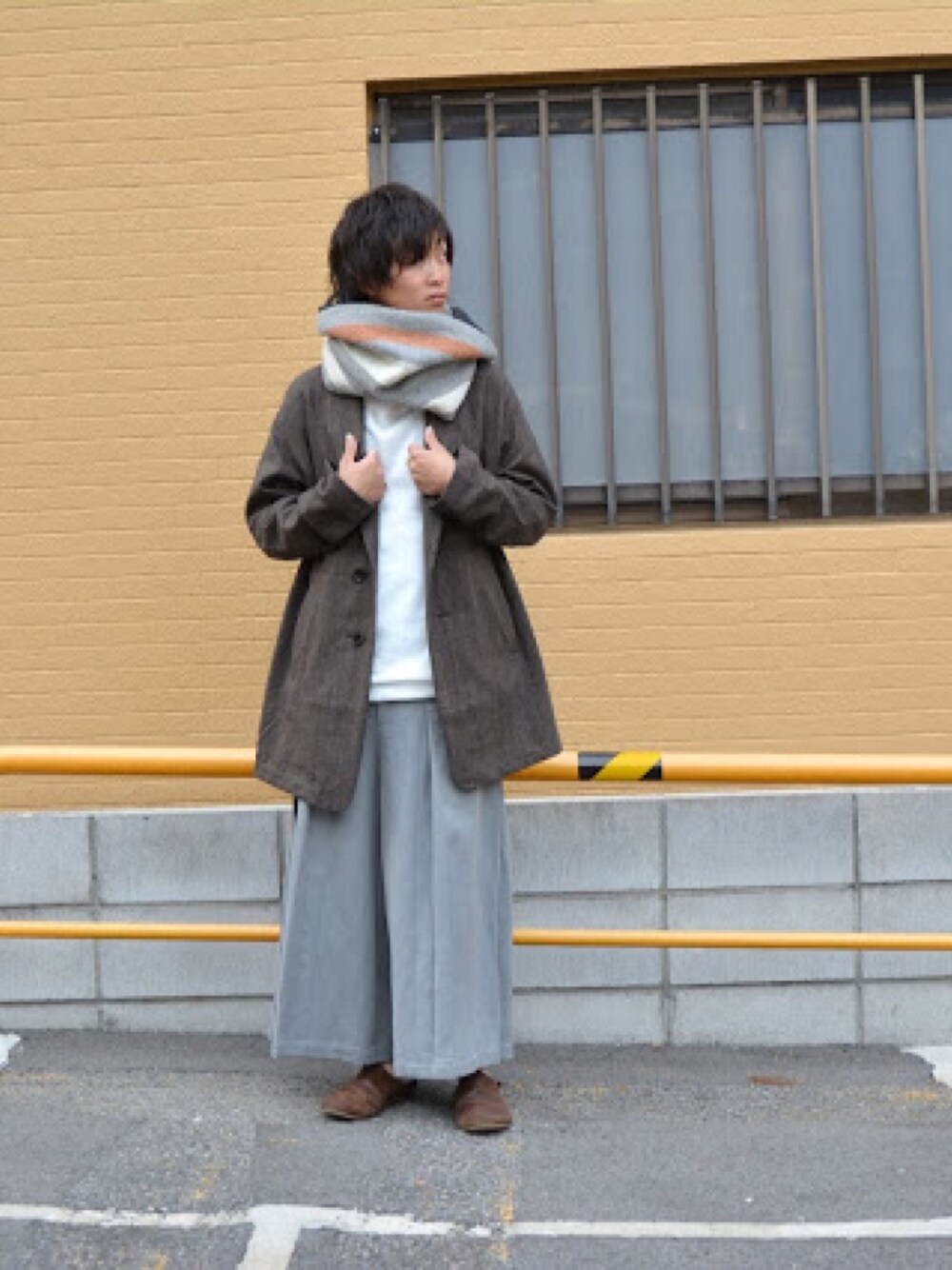 いよいよ本気で寒いです しかしこの前調子にのってコートを着たのですが 普段着ているのにはまだ早すぎて若干汗かきました笑 そんなほんのりと寒い時期にスヌードをオススメします。 My Beautiful Landlet ランダムストライプ切替中綿ビッグスヌード ヘリンボーン素材を使用したスヌード 普通にさらっと着用するのも 長さがあるので二重にして着用することもできます。 theSakaki 鬼の居ぬ間着 「鬼の居ぬ間に洗濯」 (怖い人やうるさい人がいない間にくつろいで息抜きすることの例え) theSakakiの得意とする和の雰囲気の出ているジャケット ボタンは取り外し可能な仕様となっております。 house of the very island's ワイドプリーツパンツ まるで袴パンツ・スカートのような見え方をするパンツ 見え方がとても綺麗に見えます。