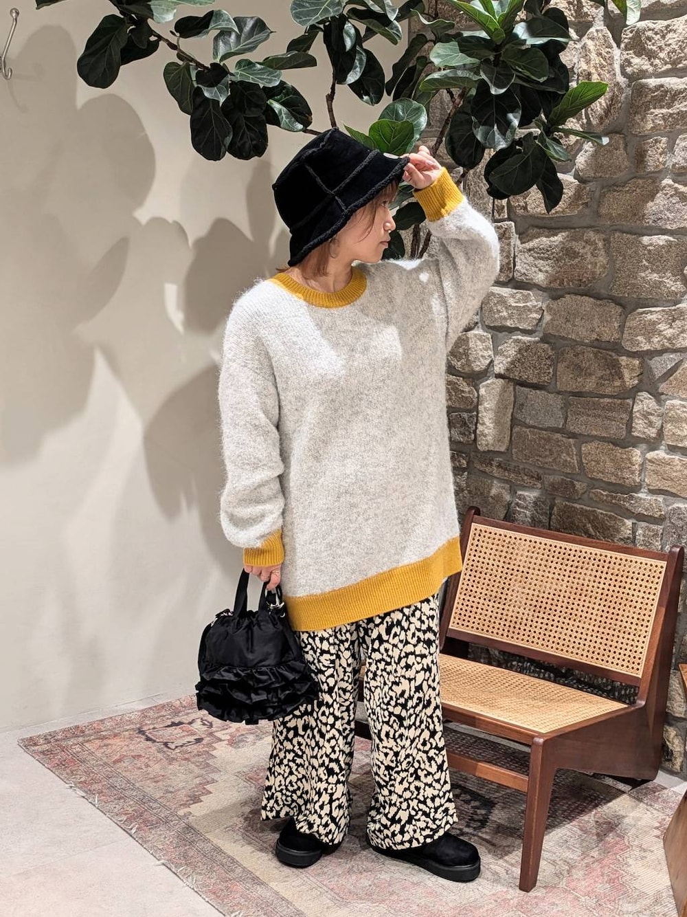 昨年好評! ✽✽✽ new バイカラーニット ✽✽✽ お先に着させていただきました! ふわふわ柔らかくて暖かい♫ただのバイカラーではなく、オフホワイトだけど少しグレー味のある優しい風合いで黄色との相性が可愛いです! 他のカラーも気になりますね🔍️ インしないほうが絶対可愛いから、レオパード柄パンツのウエストを一折しててもバレなくてありがたい♡笑 個性派さんにもシンプル派さんにも、年齢や身長に関係なくおすすめアイテムです✨