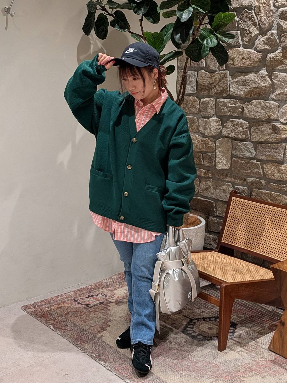 春物たくさん入荷しているので、せっかくなら性別や年齢超えてレディース以外も着ていきます🫶 メンズのシャツやカーデはもちろんオーバーなシルエットで!色が可愛くて好みです♫ キッズのEDWINデニム160は丈がぴったり😂生地は柔らかいし、ウエストもアジャスター調節。私の場合シルエットはこんな感じですが、お子さんの場合はゆるっと履くタイプなので絶対楽チンですね!