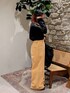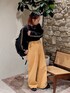 ヴィンテージ感のあるカラーバギーデニム✨ 太さやカラーがレトロな雰囲気でトレンド感!148の私にはちょっと長めです。高めの厚底スニーカーとかなら切らずにはけます😁 シンプルながらにスパンコールラインが際立つ黒ロンT、ゴールドがパンツのオレンジと相性◎このロンT見た時からカンフー感(?)出したかったので満足笑🫶 黒縁メガネつけたかった〜(残念ながらこの日は持っておらず)ハットも合いそう◎ 小物で遊び心プラスも✨