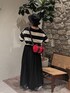 PoloシアーボーダーはBAYFLOWオリジナルの赤のワンポイント刺繍が可愛い♡柔らかい薄手のコットン100%肌にやさしいサマーニットです!ゆったり袖も半袖というよりは、ひじが隠れる5分袖くらい(私が着たら7にみえる…笑?) フワッとシルエットのメッシュ素材スカートは、スポーティなトップスともよく合います♫丈が長過ぎないのが嬉しい!背のある方は、ハイカットのスニーカー合わせや、靴下見せコーデもアリ◎ 基本はボーダーに合わせてモノトーン、バッグをワンポイントと揃えて、まとまりのあるコーデが完成👍️
