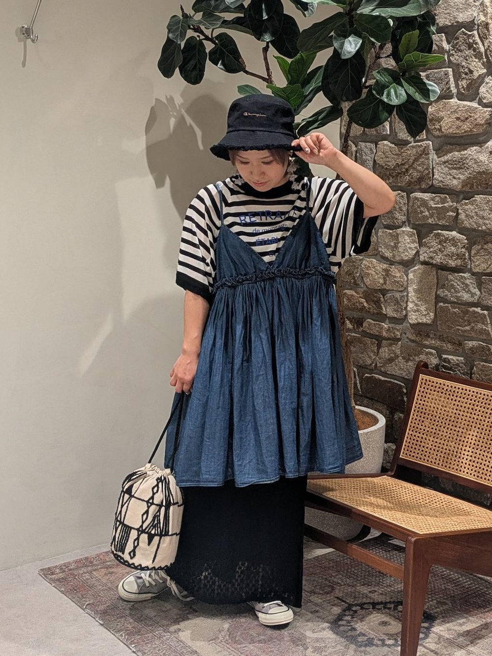✽✽✽INDIA IS BEAUTIFUL✽✽✽ デニムタイプのキャミソールビスチェ 可愛い!とにかく可愛いの一言♡バックシルエットもリボンがあって、ウエスト位置が高く見えるのが嬉しい♫しっかりお尻隠してくれる長さで着られるデザインです! ボーダーのシアーTのロゴがブルーなのがデニムと合うなぁと思っておりましたので、良い組み合わせ見つけました✌カバンや足元にカラーを取り入れても映えますね よく見たら靴紐ほどけてるし、肩紐もう少し調節して撮ればよかったとか、写りを確認して私の雑さを醸し出してしまっていろいろ反省です🥹コーデはカジュアル×フェミニンになって満足しております笑