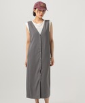 低身長にも推したいジレワンピ登場♡ ワンピースは丈が……という心配、ないですよ〜! 前後深めのVネックで、ストンとまっすぐIラインだから幼く見えないのも嬉しいポイント♫この丈でペタンコ靴履ける!なんて、ありがたいですよね🥹 ブルーロゴのピグメントTはSサイズでも身幅ゆったり。袖も可愛いし生地感もしっかり目👍️それ故にレイヤードの仕方によってはアイテム次第で着づらいときも……この組み合わせならゴワゴワせず窮屈に感じず着られるのでおすすめ◎