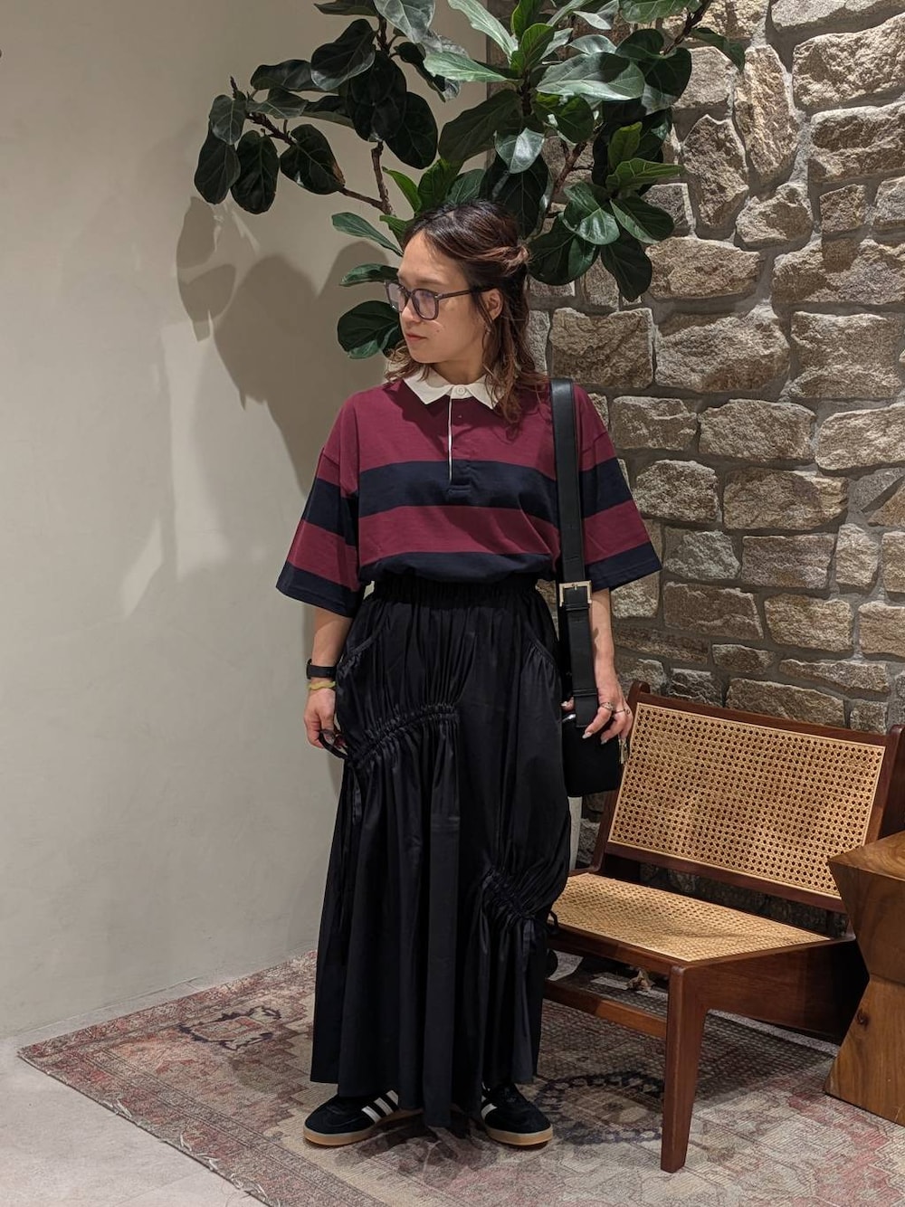 ✽✽✽ AMERICAN RAG CIE ✽✽✽ ユニセックスのラガーシャツが、私的にどストレートなスポーティ理想型デザイン!オーバーサイズ感がたまりません🎶 女子感を失わないようにスカートで合わせましたが、なかなか個性的なアシンメトリースカート。サイドのリボンで自由に変形させてデザインをしっかり主張したい派です😆 私の身長でもウエストをおらずにスニーカーでオッケーな丈感◎ カラーはシンプルにまとめましたが、個性豊かなアイテム合わせがこだわりのコーデです🫶