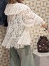 ✽✽✽ EF ✽✽✽ フリルのレースがたっぷりのブラウスはフェミニンでもあり、ドレッシーで女性らしさたっぷり✨合わせ方によっては、フォーマルに使っても◎ 色味が大好きすぎるデニムも、柔らかくてはきやすくて推します!私には長いですのでお直しか笑…、いっそのこと切りっぱなしにしもカッコよさそ♫? 甘め×デニム、流行りを問わずコーデの味方!